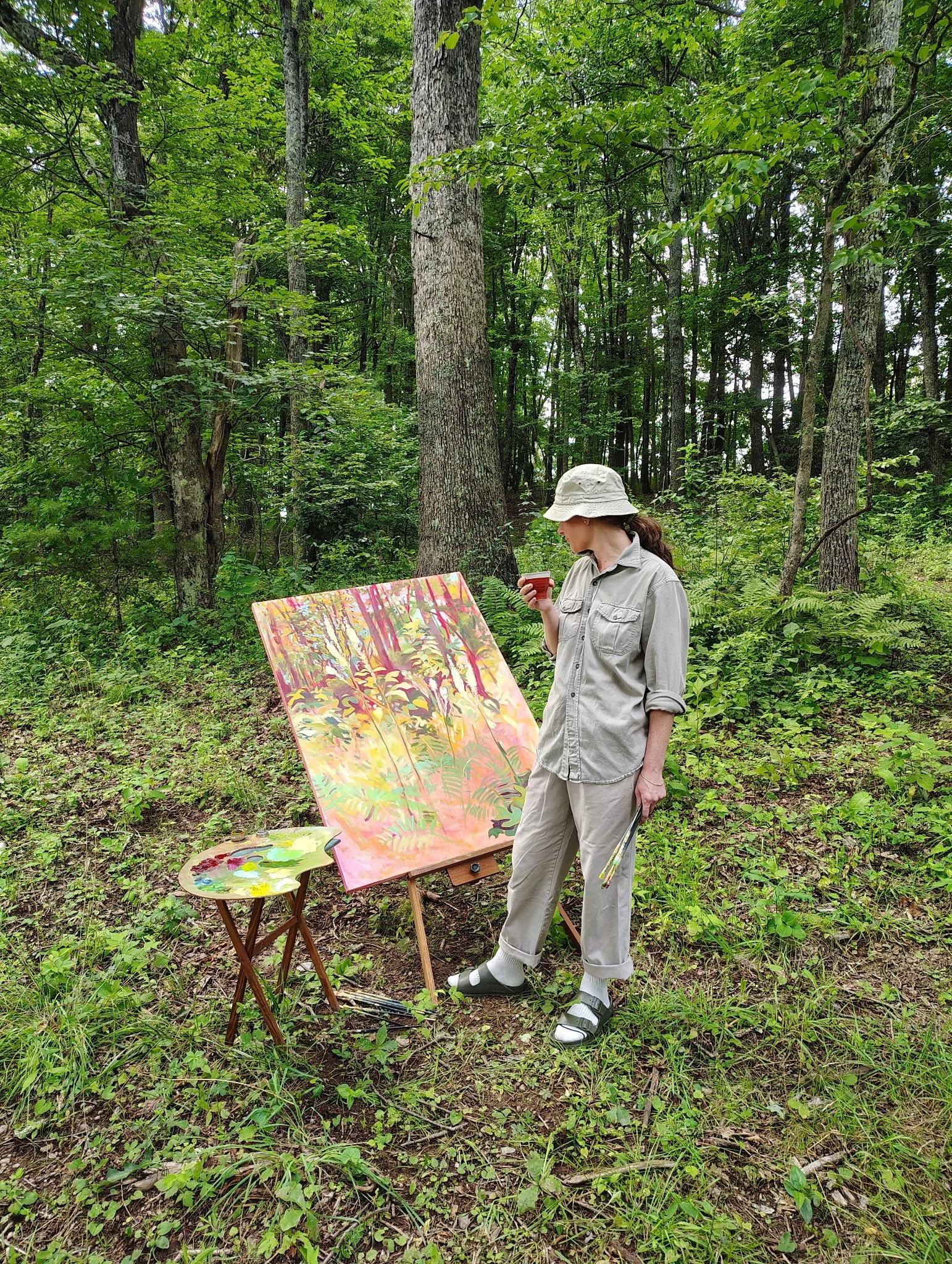 Julia situates herself in place, responding to her surroundings and bodily experience to realize her pieces. She is currently working en plein air in oil, composing the paintings through sustained observation. Julia also creates intuitively and from memory in the studio, translating thoughts and feelings from her time communing with the subject into abstract and symbolic works. Through painting the relationship is alchemized and integrated.