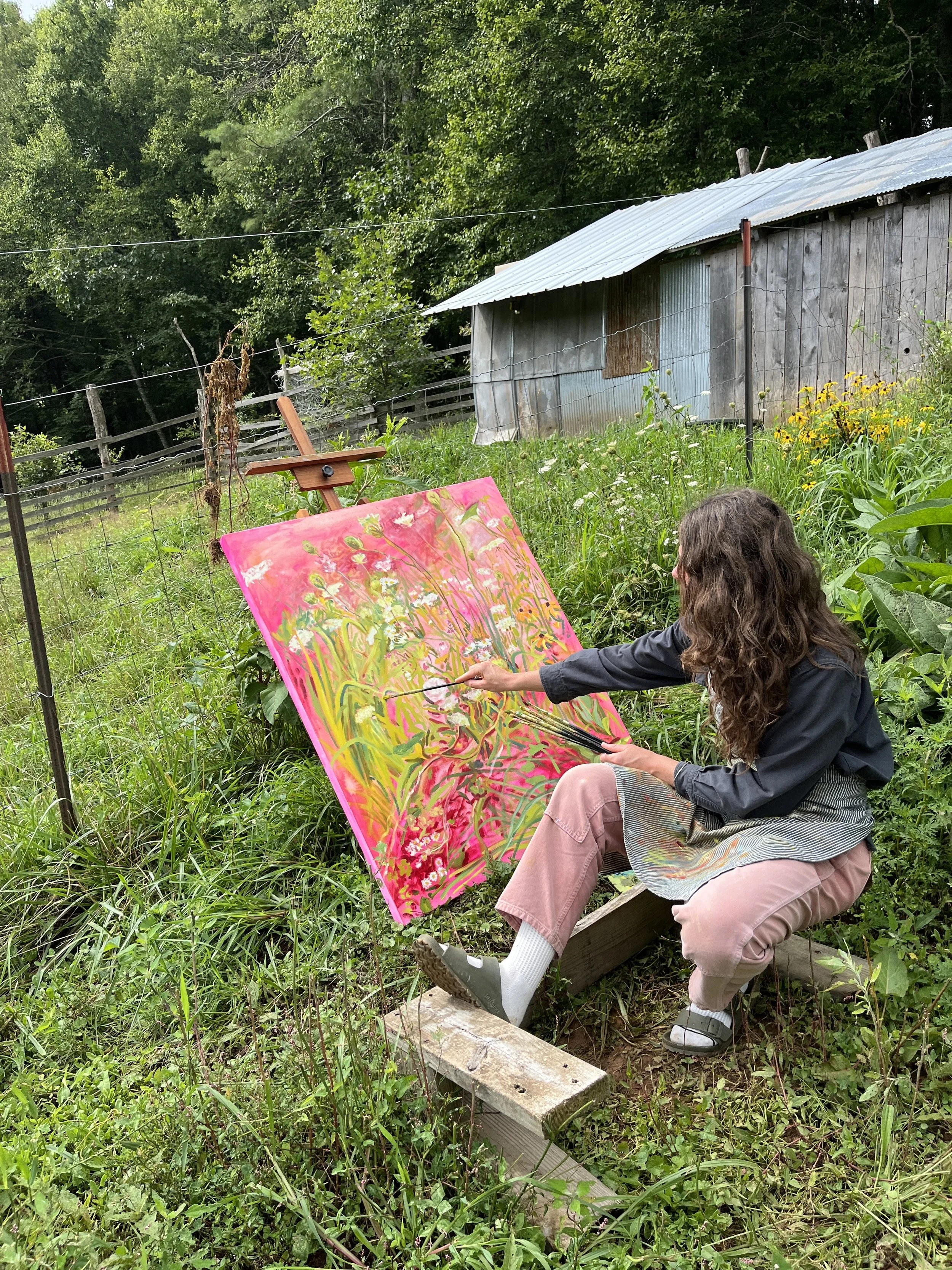 Julia situates herself in place, responding to her surroundings and bodily experience to realize her pieces. She is currently working en plein air in oil, composing the paintings through sustained observation. Julia also creates intuitively and from memory in the studio, translating thoughts and feelings from her time communing with the subject into abstract and symbolic works. Through painting the relationship is alchemized and integrated.